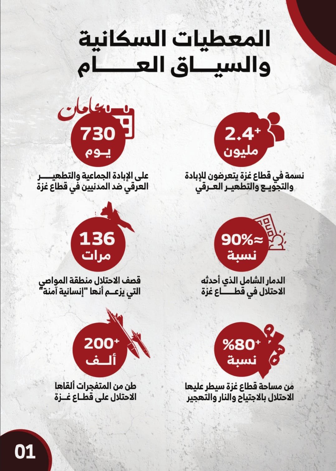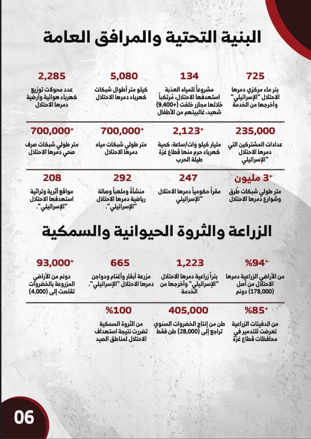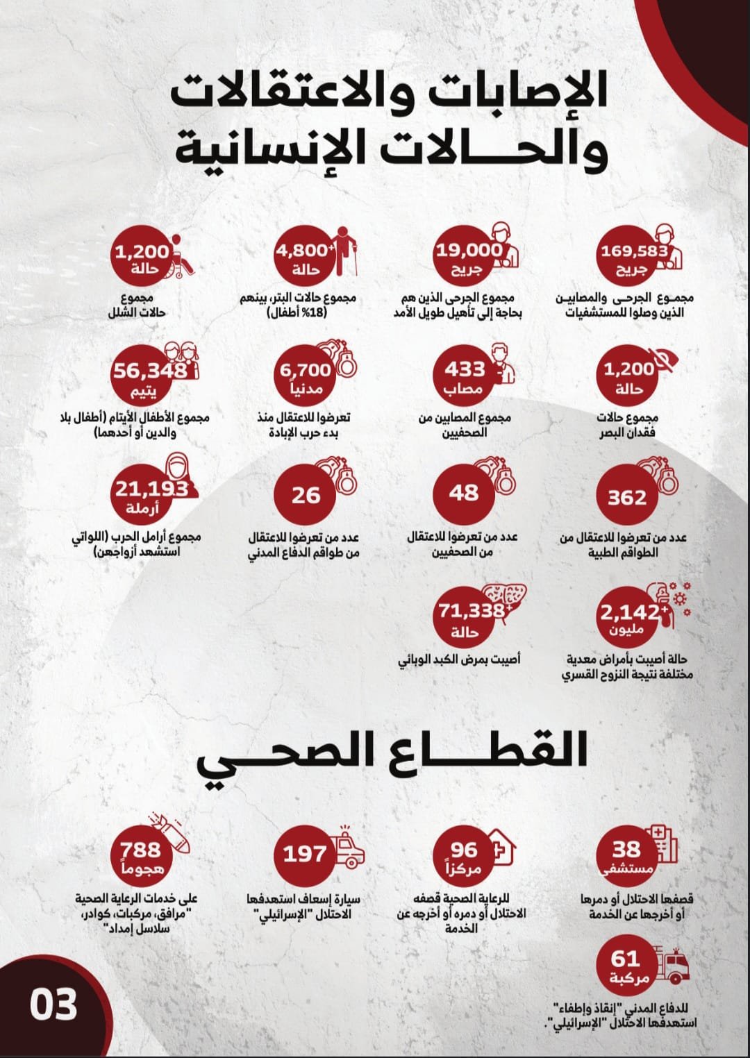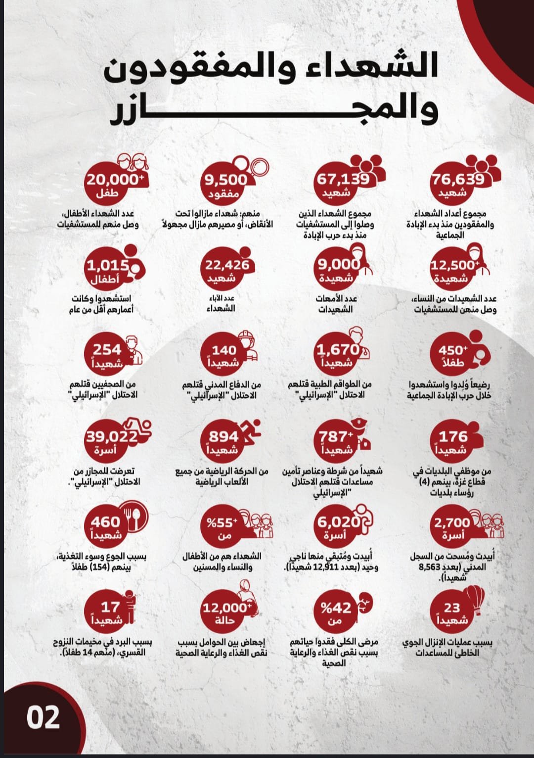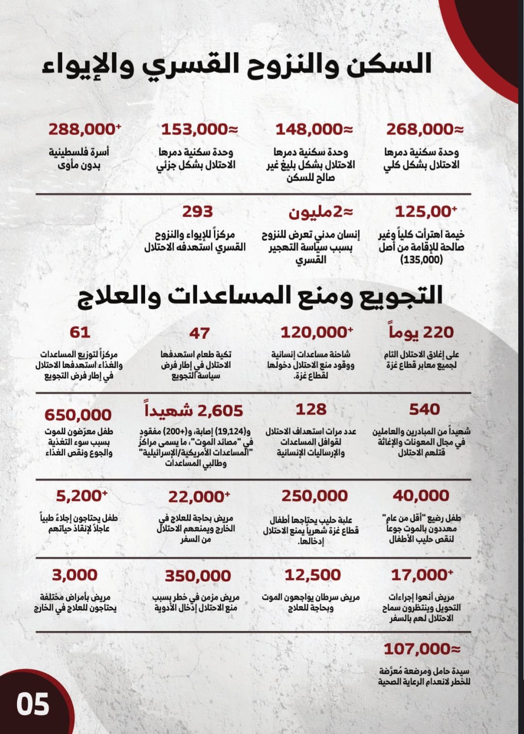 ♦️ *المكتب الإعلامي الحكومي ينشر تحديثاً لأهم إحصائيات الإبادة الجماعية التي يرتكبها الاحتلال “الإسرائيلي” في قطاع غزة بمناسبة مرور عامين كاملين (730 يوماً على الإبادة)، من السبت 7 أكتوبر 2023 حتى الأحد 5 أكتوبر 2025:*