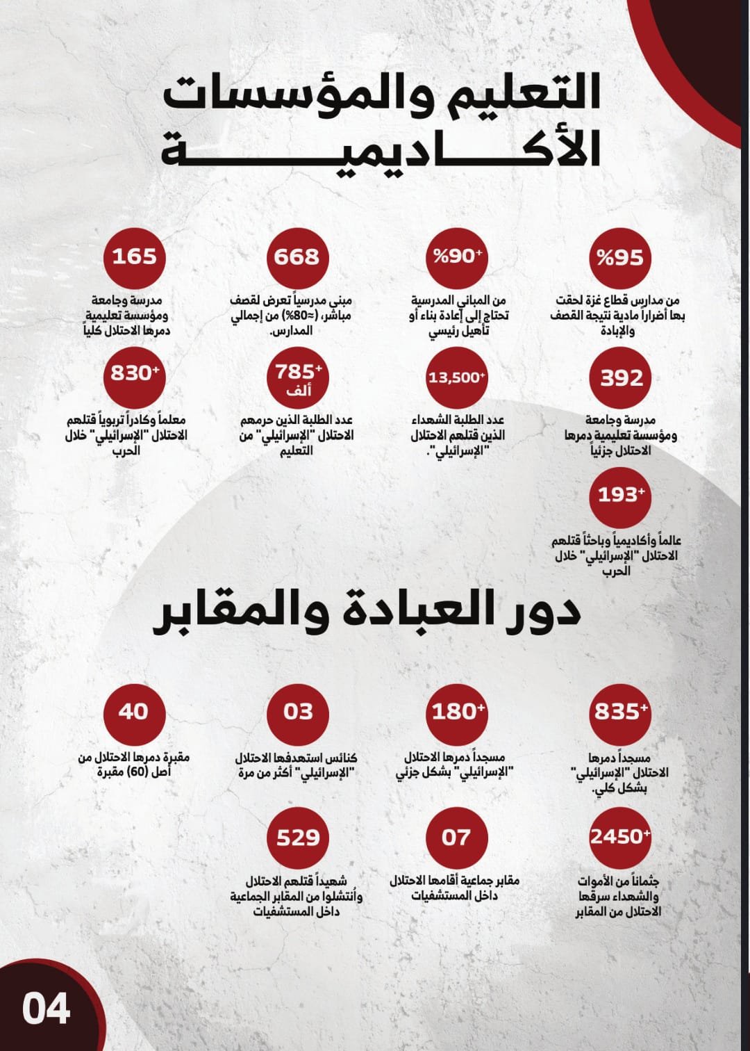 🔸(+830) معلماً وكادراً تربوياً قتلهم الاحتلال “الإسرائيلي” خلال الحرب.