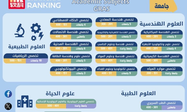 ويُعد تصنيف شنغهاي للتخصصات الأكاديمية (Shanghai Ranking – GRAS) أحد أبرز التصنيفات العالمية التي تقيس أداء الجامعات في التخصصات الدقيقة اعتمادًا على بيانات موضوعية بالكامل دون أي استبيانات أو آراء بشرية.