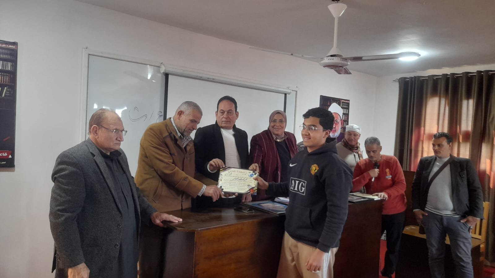 وتم توزيع شهادات التقدير على الطلبة المتميزين فى مسابقة القرآن بحضور محمد صلاح سكرتير عام بمجلس مدينة منية النصر، وثابت عبد النبى والإعلامية سهير حجازى بشركة صوت القاهرة، وعدد كبير من الأساتذة بمعهد أبو النصر الأزهرى.