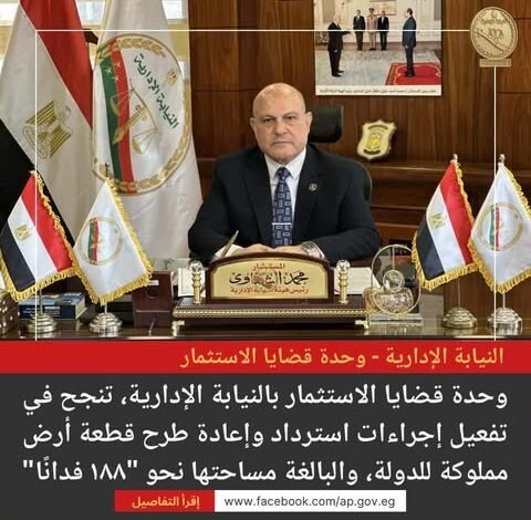 وأكدت النيابة الإدارية أن هذا التحرك يأتي في سياق دورها في ترسيخ مبادئ الحوكمة وسيادة القانون، ومنع إهدار المال العام، بما يسهم في تحسين كفاءة إدارة أصول الدولة وتهيئة مناخ استثماري جاذب.