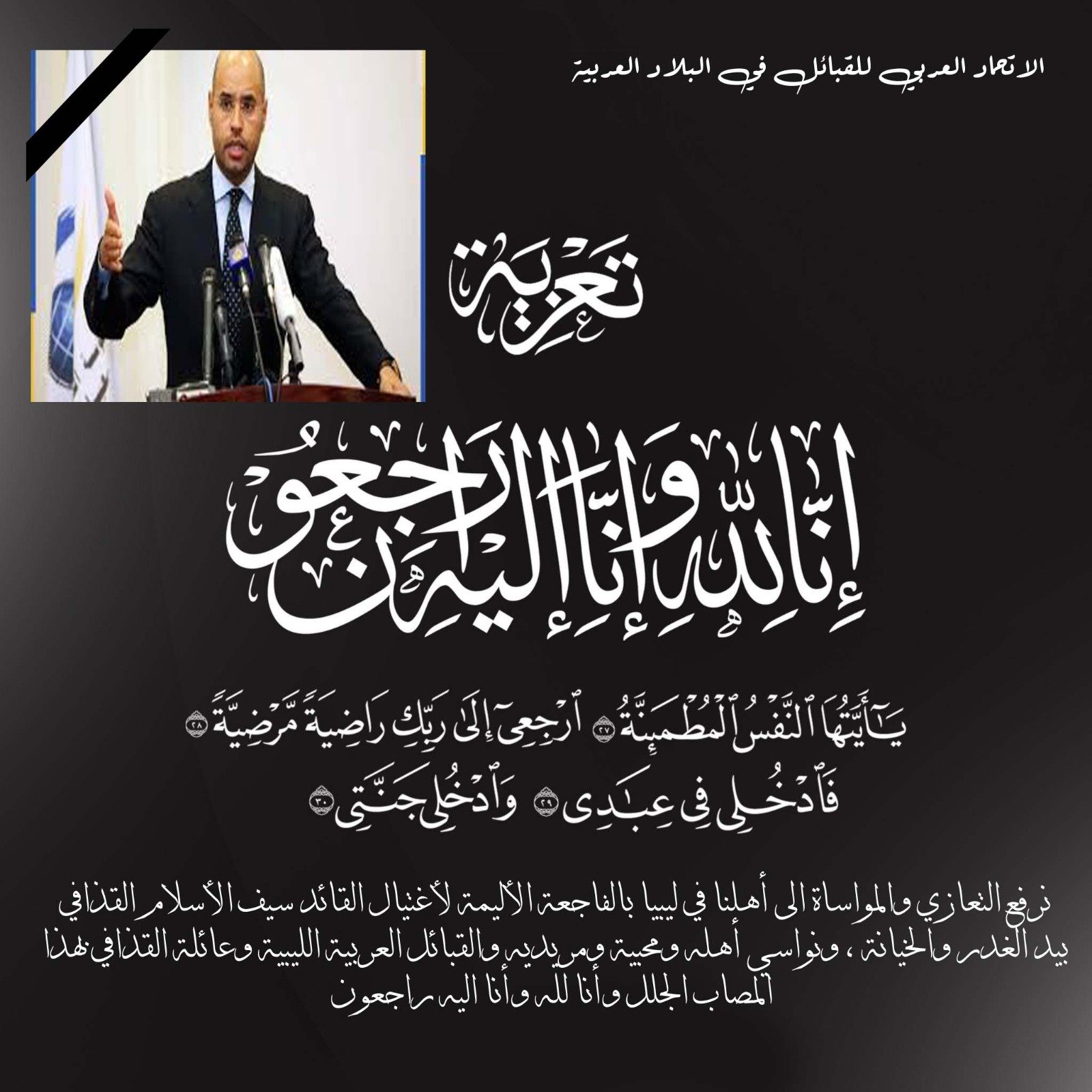 ينعى الإتحاد العربي للقبائل في البلاد العربية “سيف الإسلام القذافي” الذي اُغتيل.