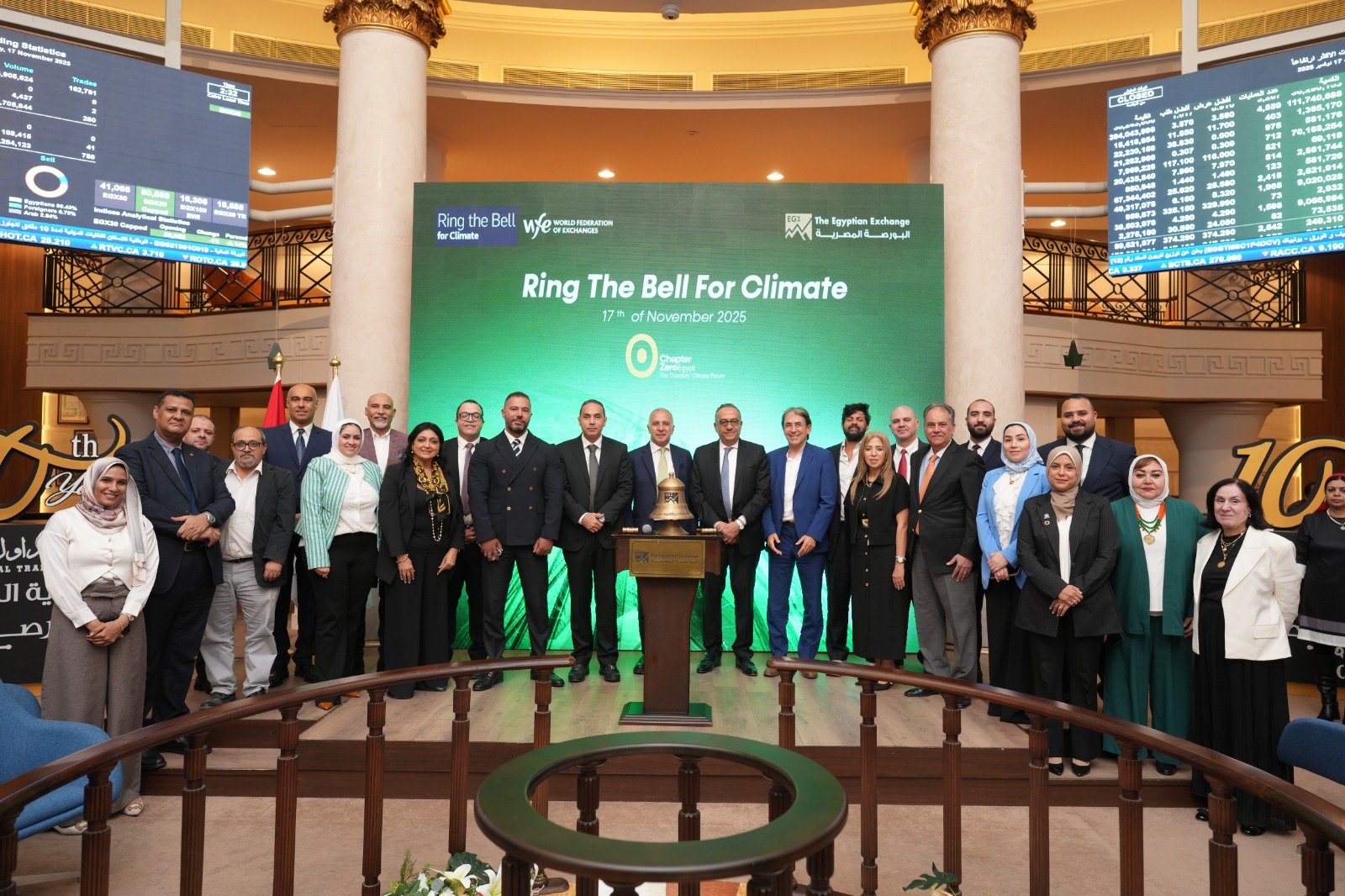 افتتح الدكتور إسلام عزام – رئيس البورصة المصرية فعالية “قرع الجرس من أجل المناخ”، والتي أقيمت اليوم الاثنين، الموافق 17-نوفمبر-2025، في المبنى التاريخي للبورصة المصرية، وذلك بالتعاون مع الاتحاد العالمي للبورصات (WFE) وبالتزامن مع مؤتمر (COP30) المنعقد في البرازيل في الفترة من 10-نوفمبر-2025 إلى 21-نوفمبر-2025، وذلك بحضور كل من: محمد صبري – نائب رئيس البورصة، والمهندس أحمد السويدي – رئيس مجلس إدارة جمعية شابتر زيرو إيجيبت (Chapter Zero Egypt) ، وأيمن صلاح – المدير التنفيذي للجمعية.