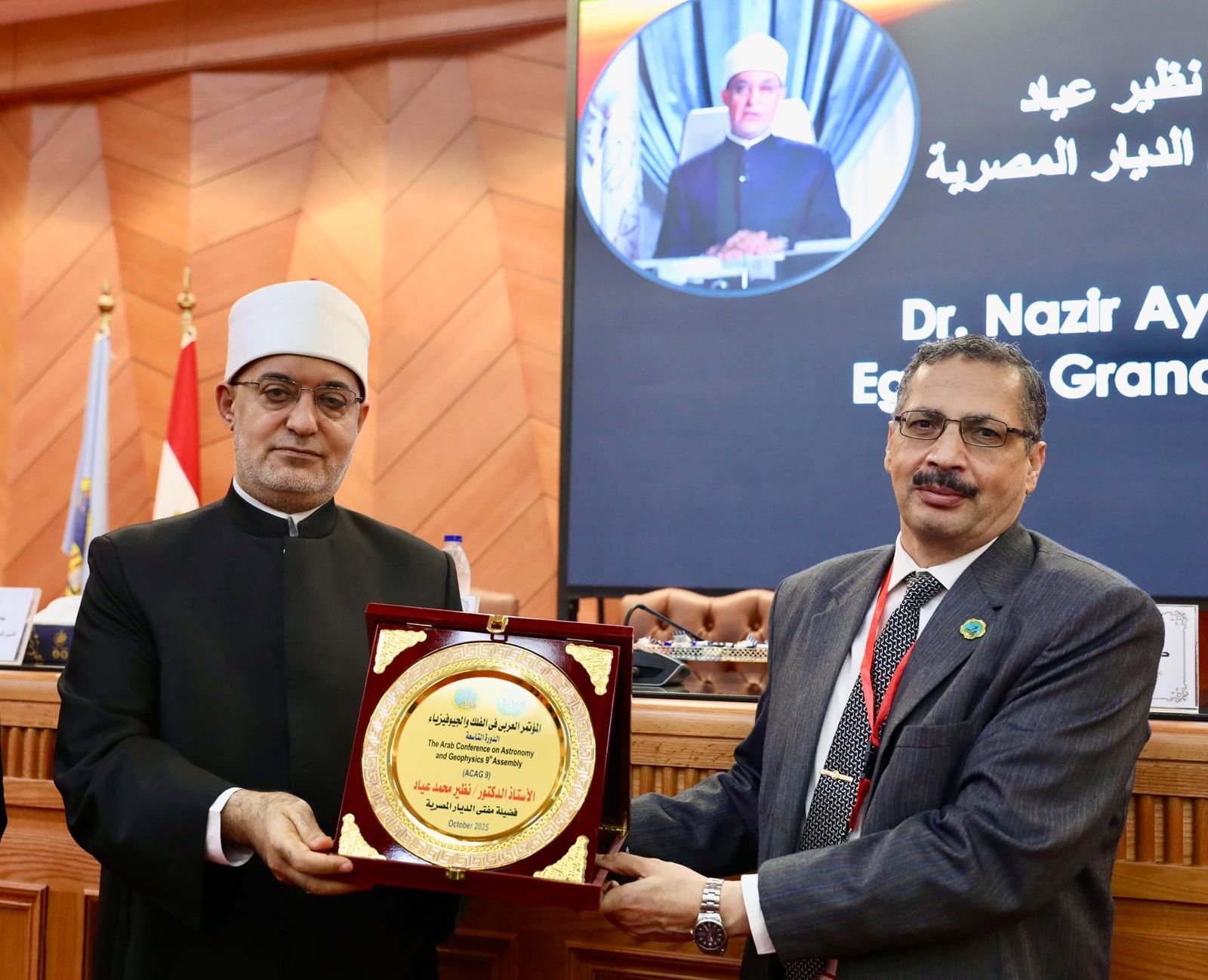 من جانبه أعرب الدكتور طه رابح رئيس المعهد القومي للبحوث الفلكية والجيوفيزيقية عن سعادته الكبيرة، وتقديره البالغ لحضور فضيلة المفتي، مشيدا بما يمثله وجوده من دعم كبير لمسيرة البحث العلمي وتعزيز جسور التواصل بين العلماء ورجال الدين، وقد قام بتكريم فضيلته مقدما درع المعهد؛ عرفانا بمكانته المرموقة وتقديرا لدوره الريادي في ترسيخ قيم الوسطية ونشر الوعي والفكر المستنير.