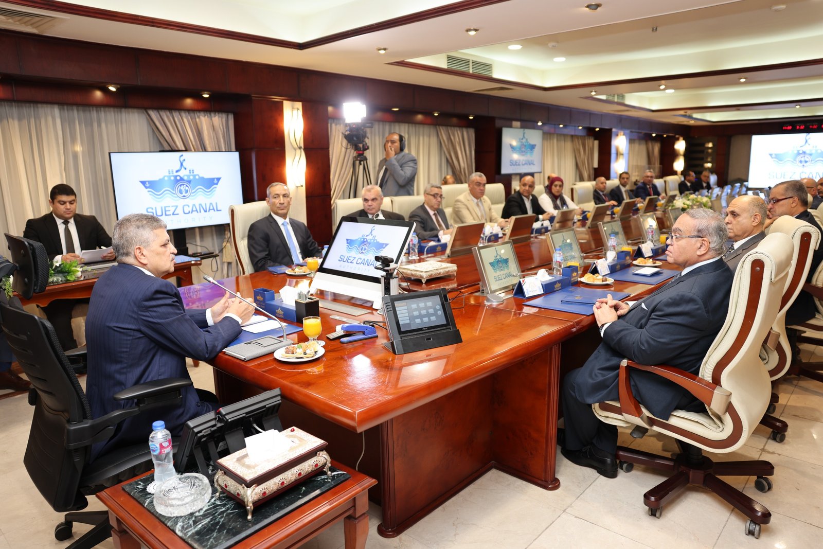 كما أشاد ممثل توكيل الخليج بجهود تطوير وتحديث الأسطول البحري للهيئة والتي أضفت شكلاً حضارياً وارتقاءً بمستوى الخدمات المقدمة، واقترح مساهمة الهيئة في تطوير منظومة الخدمات اللوجيستية التي تقدمها التوكيلات الملاحية للسفن العابرة للقناة من خلال لنشات بحرية يتم بناؤها بترسانات وشركات الهيئة وبالتعاون مع بعض الجهات التمويلية.