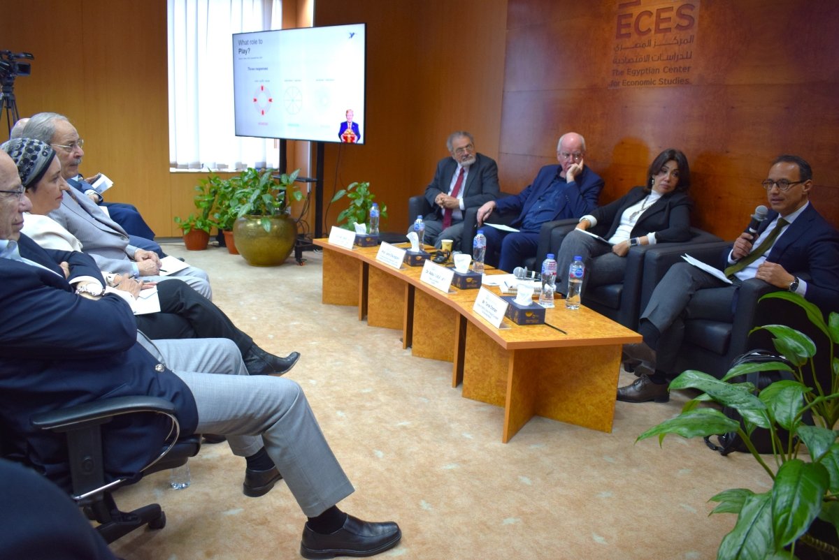 وأضاف أن «الهدية» هنا لا تعني أن سياساته إيجابية في حد ذاتها، وإنما تكمن في كونها فرضت تحديا قاسيا أجبر كثيرين على إعادة النظر في حلول غير كافية، محذرا من أن يؤدي ذلك إلى حالة من الفوضى تفقد المجتمعات بوصلتها، وهو ما يبرز الحاجة الملحة إلى قيادة واعية قاد رة على توجيه مسار التغيير. وأشار في هذا السياق إلى الدور المهم الذي يمكن أن تلعبه مراكز الفكر والمؤسسات البحثية، مثلالمركز المصري للدراسات الاقتصادية، في سد فجوة القيادة الحالية .