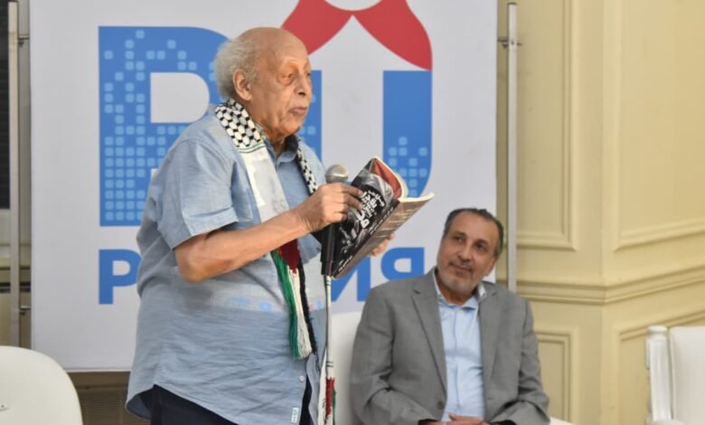 أدار اللقاء شريف جاد الأمين العام لجمعية الصداقة المصرية الروسية ومدير النشاط الثقافي بالبيت الروسي الذي أشار الى ان الشاعر الكبير ابن أسوان يُعد واحدًا من أهم شعراء الكلمة الوطنية، وأن فكرة اللقاء جاءت للاستمتاع بأشعاره بمناسبة مرور 52 عاما على الاحتفالية التي قدمها هنا بالمركز، وأيضا للاستمتاع برؤية ما التقطته كاميرته التي لا تفارقه لأنه عاشقًا للصورة، وكل صورة يلتقطها “عم زين” كما يلقبه جمهوره هي صورة لها دلالة، وتوثيقًا لحدث أو موقف مرتبط بأحداث وطنية وثقافية، أو برموز من المفكرين والشخصيات المؤثرة.