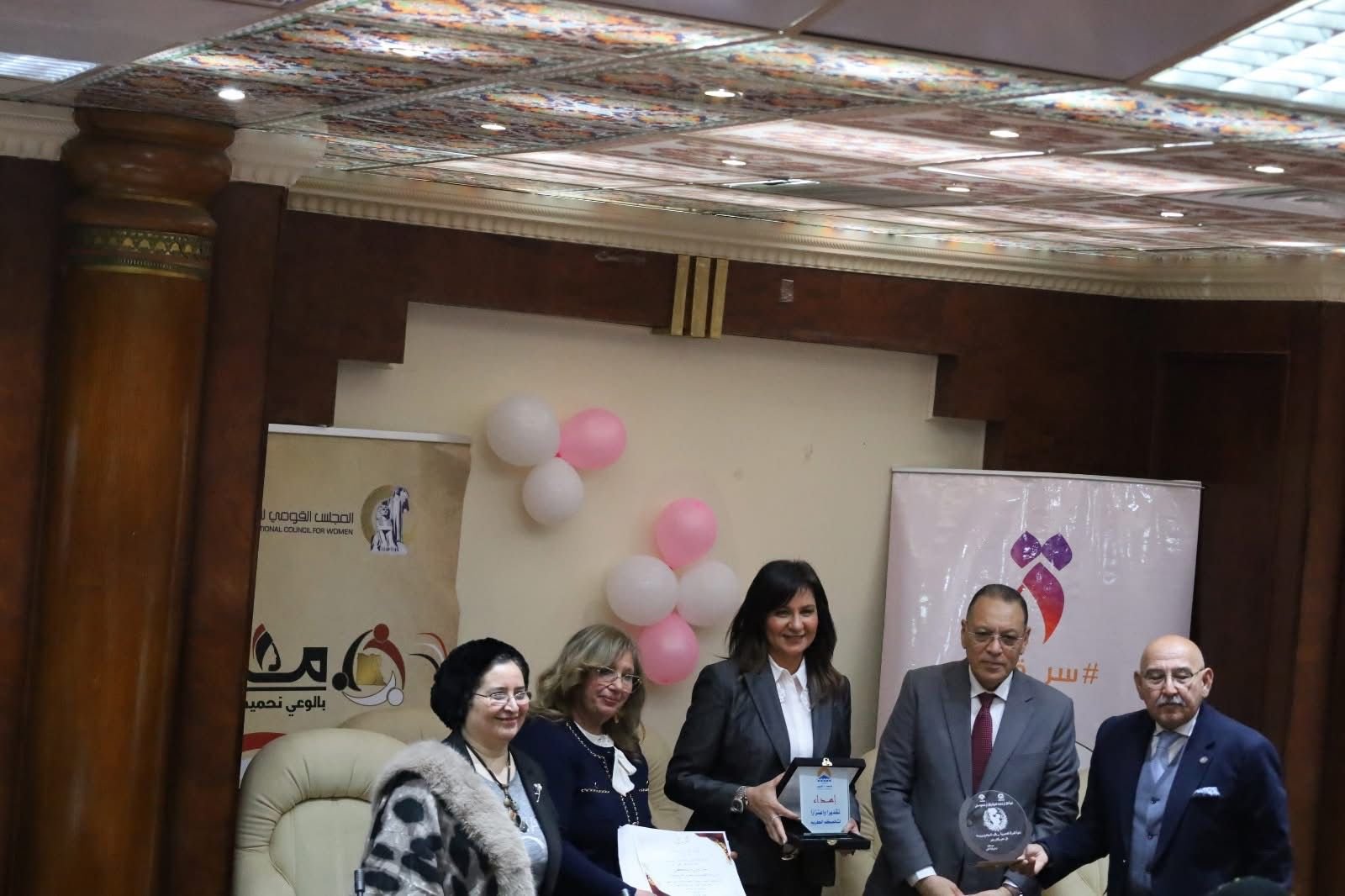 فقد تم تكريم الوزيرة نيفين الكيلاني وزيرة الثقافة الأسبق، والسفيرة نبيلة مكرم وزيرة الدولة للهجرة وشئون المصريين بالخارج الأسبق، والدكتورة هبة شاروبيم عضو مجلس الشيوخ، والحاجة ياسمين الحصري مدير إدارة جمعية الحصري الخيرية، والفنانة القديرة وفاء الحكيم، والأستاذة الدكتورة إيمان العزيزي نائب رئيس الجامعة لشؤون التعليم والطلاب، والأستاذة الدكتورة ناهد مصطفي المشرف علي مركز ضمان الجودة والتدريب وأخلاقيات البحث العلمي بالجامعة.