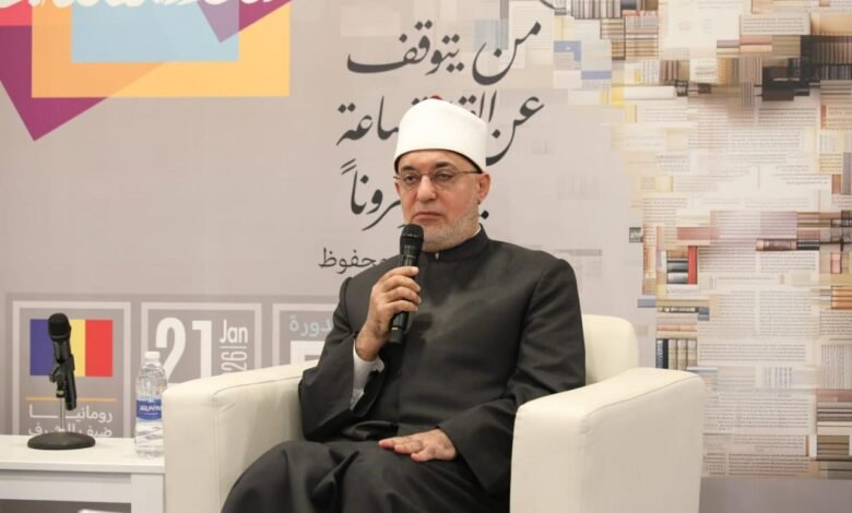 خلال محاضرة المفتى بندوة «دور الفتوى في الحفاظ على الهوية» التي نظمتها الهيئة العامة للكتاب يؤكد على أن الفتوى الرشيدة تحمي الدين والهوية وتصون الأوطان