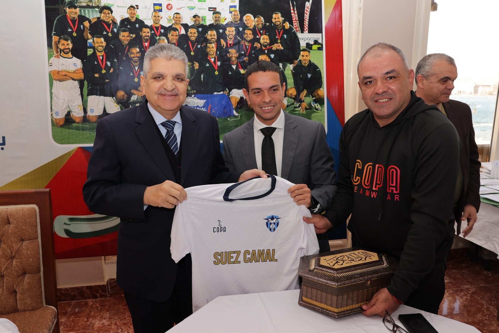 ودعا رئيس الهيئة اللاعبين المكرمين بفريق الهوكي بنادي بورفؤاد إلى استلهام روح التحدي والتغلب على الصعوبات من قناة السويس، التي استطاعت الصمود ومجابهة العديد من الأزمات في السنوات الأخيرة.