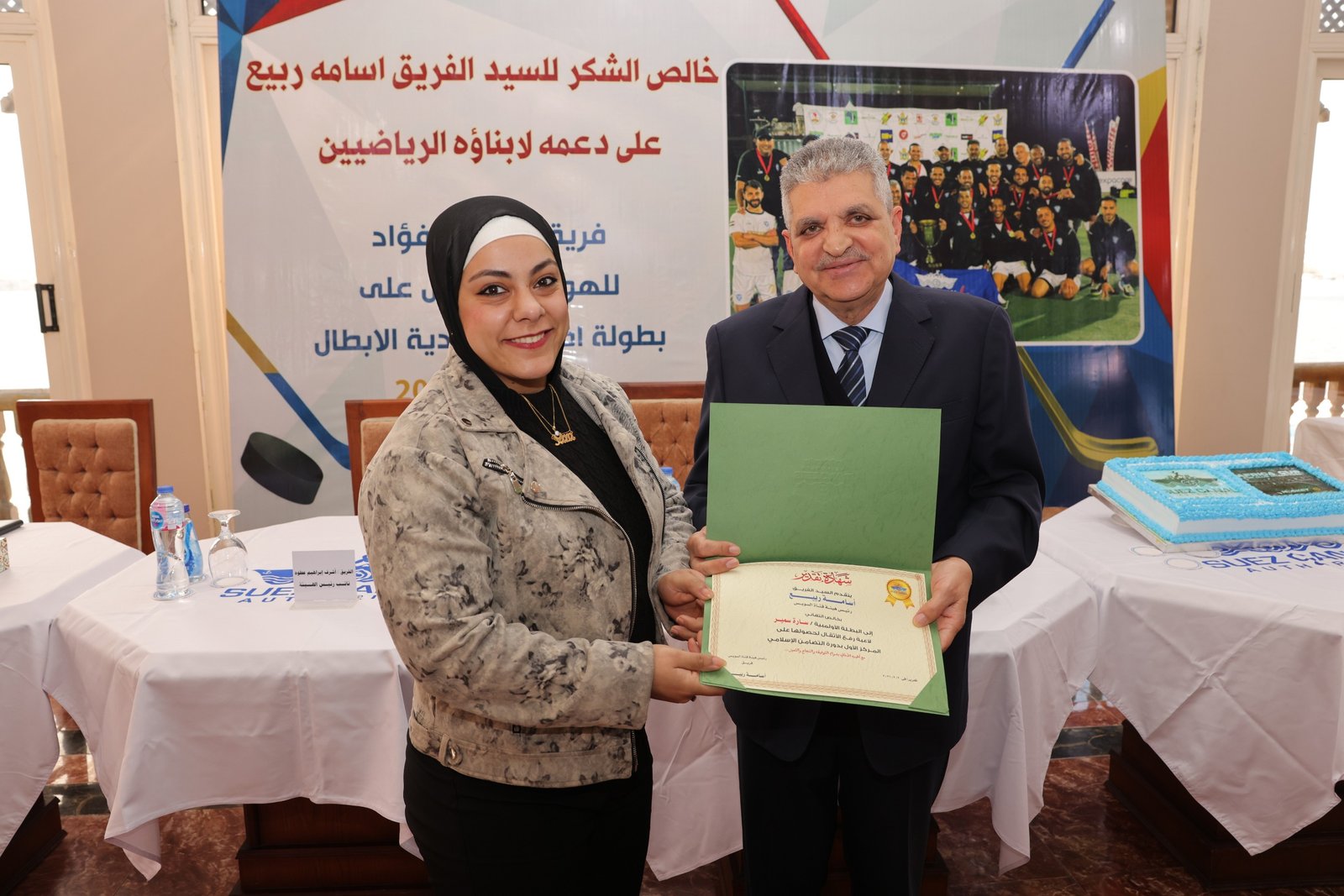 شهدت مراسم التكريم منح الفريق أسامة ربيع شهادات تقدير للجهاز الفني والإداري ولاعبي الفريق الأول للهوكي بنادي بورفؤاد، ثم تكريم البطلة سارة سمير، تقديراً لجهودهم وتفانيهم في تمثيل مصر بصورة مشرفة في المحافل الإفريقية والدولية.