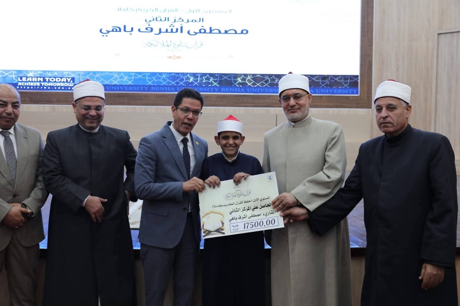 من جانبه رحَّب الأستاذ الدكتور ناصر الجيزاوي -رئيس جامعة بنها- بمفتي الجمهورية، مؤكدًا أن زيارته تمثل دعمًا كبيرًا لمسيرة الجامعة ورسالتها العلمية والمجتمعية، وأن مشاركة فضيلته في تكريم حفظة القرآن الكريم تعكس التكامل بين المؤسسات الدينية والأكاديمية في نشر الوعي الصحيح وترسيخ القيم الوسطية وبناء شخصية طلابية متوازنة تجمع بين التفوق العلمي والالتزام الأخلاقي. وأن الجامعة تحرص على تنظيم الفعاليات التي تعزز الانتماء وترسخ الهوية وتدعم المواهب الشابة في مختلف المجالات وفي مقدمتها حفظ كتاب الله بما يسهم في إعداد جيل قادر على تحمُّل المسؤولية وخدمة وطنه وأمَّته.