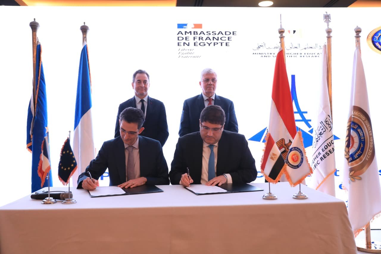 كما تم توقيع مذكرة تفاهم لتنفيذ برنامج المنح الدراسية لدرجة الدكتوراه، الممول بالشراكة بين السفارة الفرنسية ووزارة التعليم العالي والبحث العلمي المصرية، والذي يهدف إلى تمويل 100 منحة دكتوراه خلال خمس سنوات في مختلف المجالات العلمية والبحثية؛ تعزيزًا للتعاون الأكاديمي وتبادل الخبرات بين البلدين.