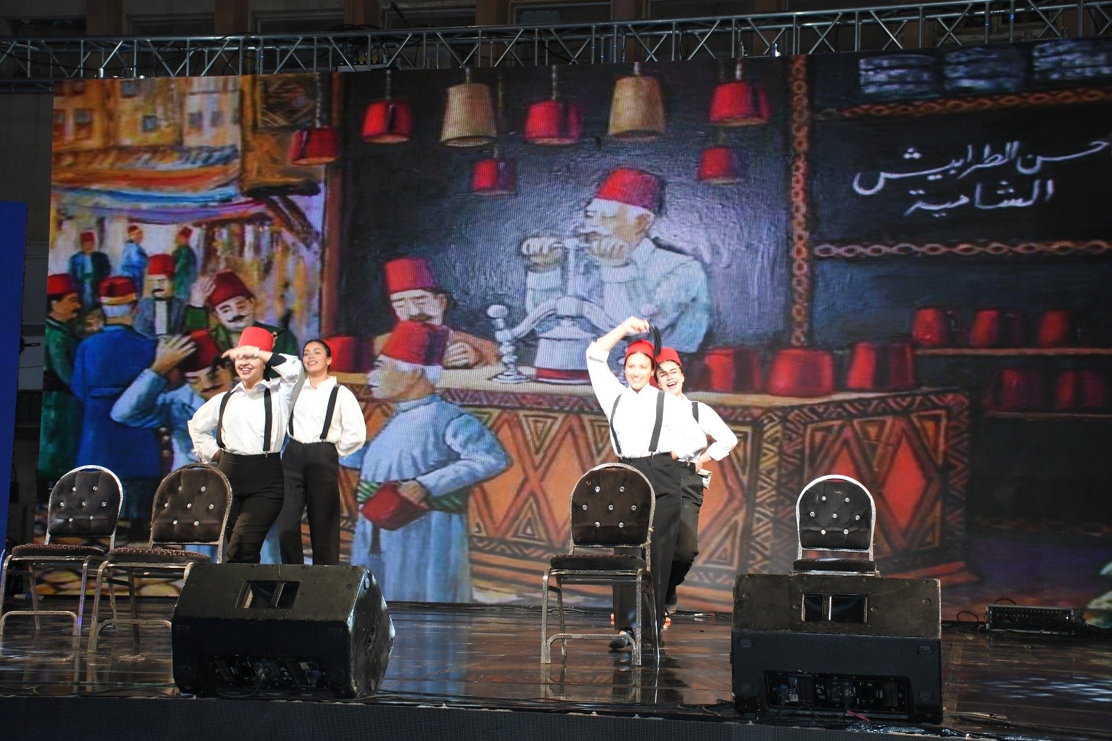 وقدم الدكتور مصطفى مهلل فقرة تواشيح وابتهالات دينية، أعقبها فقرة استعراضية قدمها طلاب كلية علوم الرياضة بنات تحت إشراف الدكتورة أمل عبدالله عميد الكلية، ثم تقديم عرض الحارة الشعبية الذي قدمته طالبات الفرقة الرابعة تخصص التعبير الحركي، كما تم تقديم فقرات موسيقية وعزف منفرد على آلة الكمان وكورال صوت العاصمة تحت إشراف الدكتورة شيرين عبداللطيف عميد الكلية، بالإضافة إلى فقرة استعراضية قدمتها فرقة جامعة العاصمة للفنون الاستعراضية.