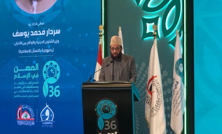 ألقى وزير باكستان للشؤون الدينية “سردار محمد يوسف” كلمة أمام مؤتمر المجلس الأعلى للشؤون الإسلامية، افتتح كلمته بالترحيب بالوزراء، والعلماء الكرام، والباحثين، والمندوبين، وبالحضور الكريم وقال: “إنه لشرف عظيم لي أن أتحدث إلى هذا الجمع الكريم في المؤتمر الدولي العام السادس والثلاثين للمجلس الأعلى للشؤون الإسلامية، المنعقد في مدينة القاهرة التاريخية، المدينة التي ظلت لقرون منارةً للعلم الإسلامي والاعتدال والريادة الفكرية في العالم الإسلامي”.